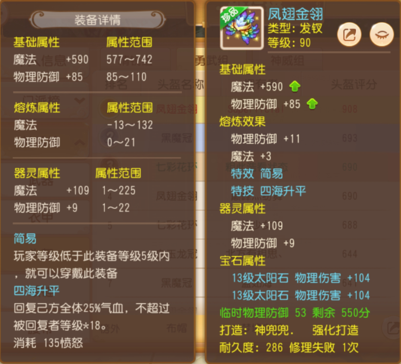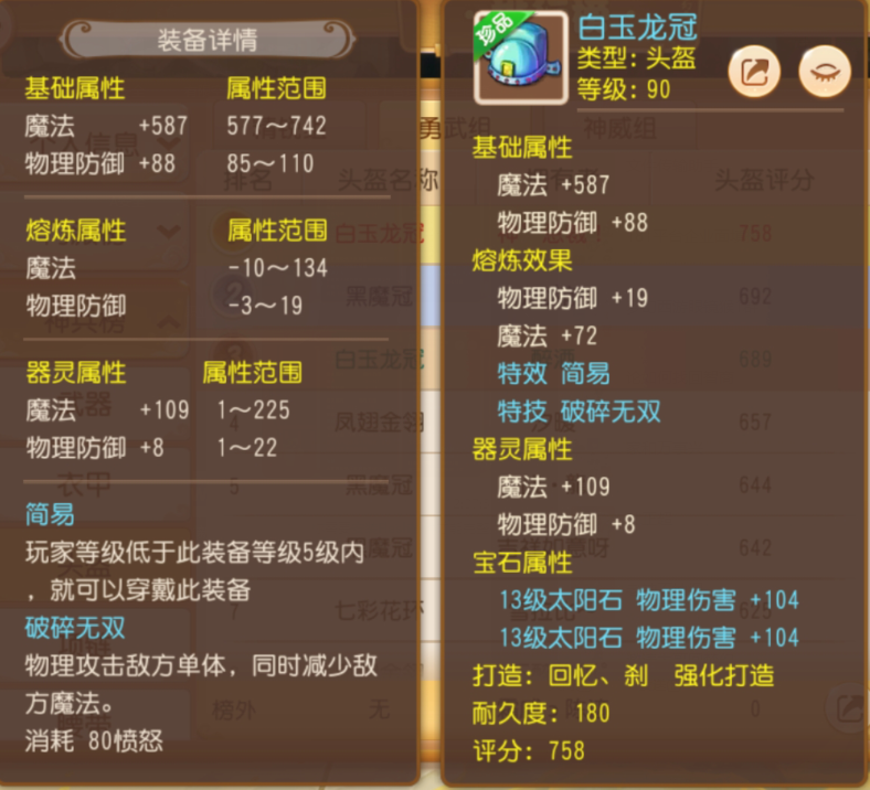 88物防、587魔法初始属性一般,但是经过熔炼后,还是很不错的。