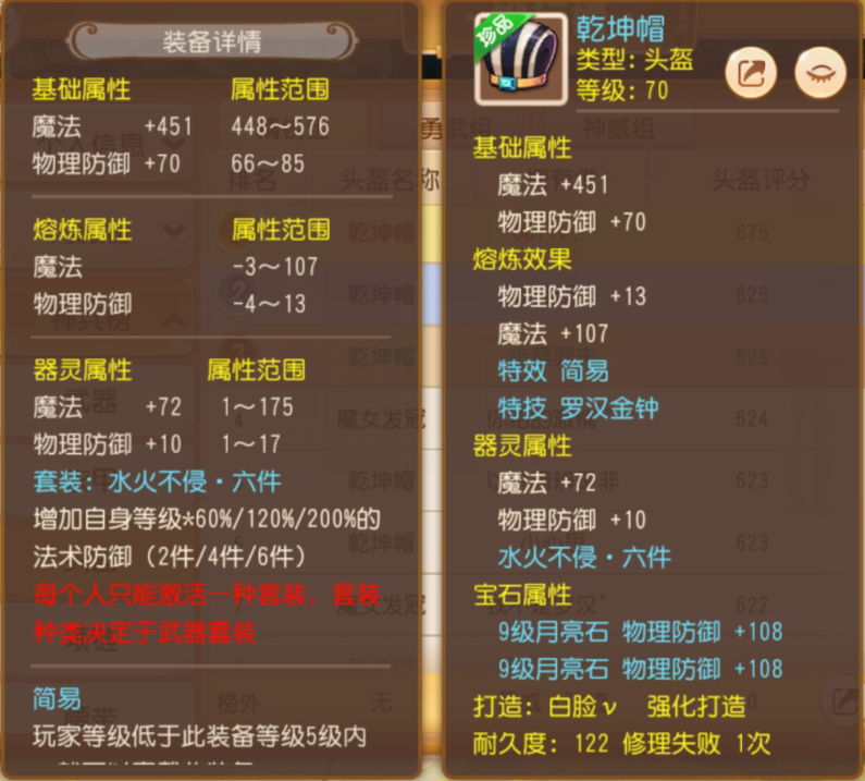 这件简易罗汉头配的器灵也是极品。水火不侵·六件套,集齐套装后,直接提升精锐玩家138点法术防御属性,搭配减免法伤的罗汉金钟,再也不怕暴力法系门派了~
