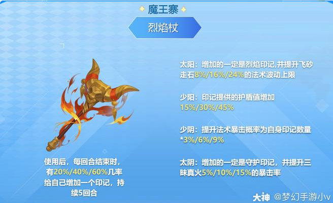四象太阳:增加的一定是烈焰印记,并提升飞砂走石8%/16%24%的法术波动上限。