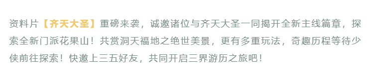 全新资料片齐天大圣上线!新门派、新玩法、新剧情惊喜来袭!