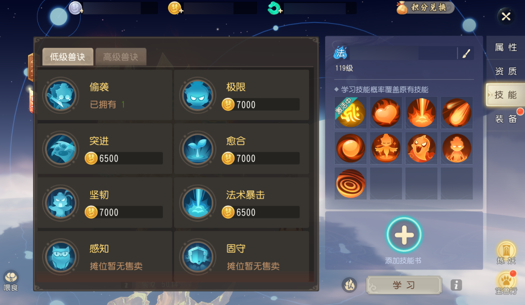 在全新召唤兽系统中,少侠无需跳转界面就可以完成买书、打书、炼妖操作,体验大大优化。