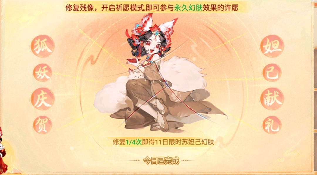 本次新服还为大家准备了一份特殊礼物,登录签到必得狐小妖专属幻肤“苏妲己”。在此后每日达成活跃任务,更可获得一把钥匙随机换取永久幻肤丹或幻肤丹碎片。即使一时没有抽出永久也没关系,碎片支持上架摆摊交易,喜欢的少侠可以通过购买其它玩家上架的碎片进行合成,各取所需~