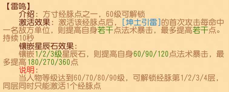 【乾天罡气】状态下,经脉可以为【炽火咒】提供较多暴击,且持续时间可达12秒。这将极大地提升了核心输出技能的暴击,即提升了总体的输出能力。