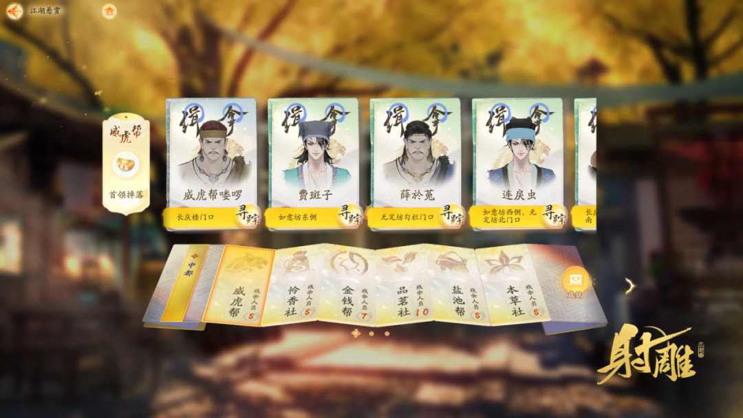 所谓红尘戏,也是制作组根据《射雕》所处时代背景,为故事中的角色们所编写的大量支线任务,有打着理财幌子行诈骗事实的庞氏商人,也有为了爱人而抛却优越家庭跑来私奔的痴情书生,少侠们在《射雕》江湖中行走时,遇到这些一看就很有故事的路人,也可以攀谈两句,说不定,就能有一些意想不到的奖励呢。