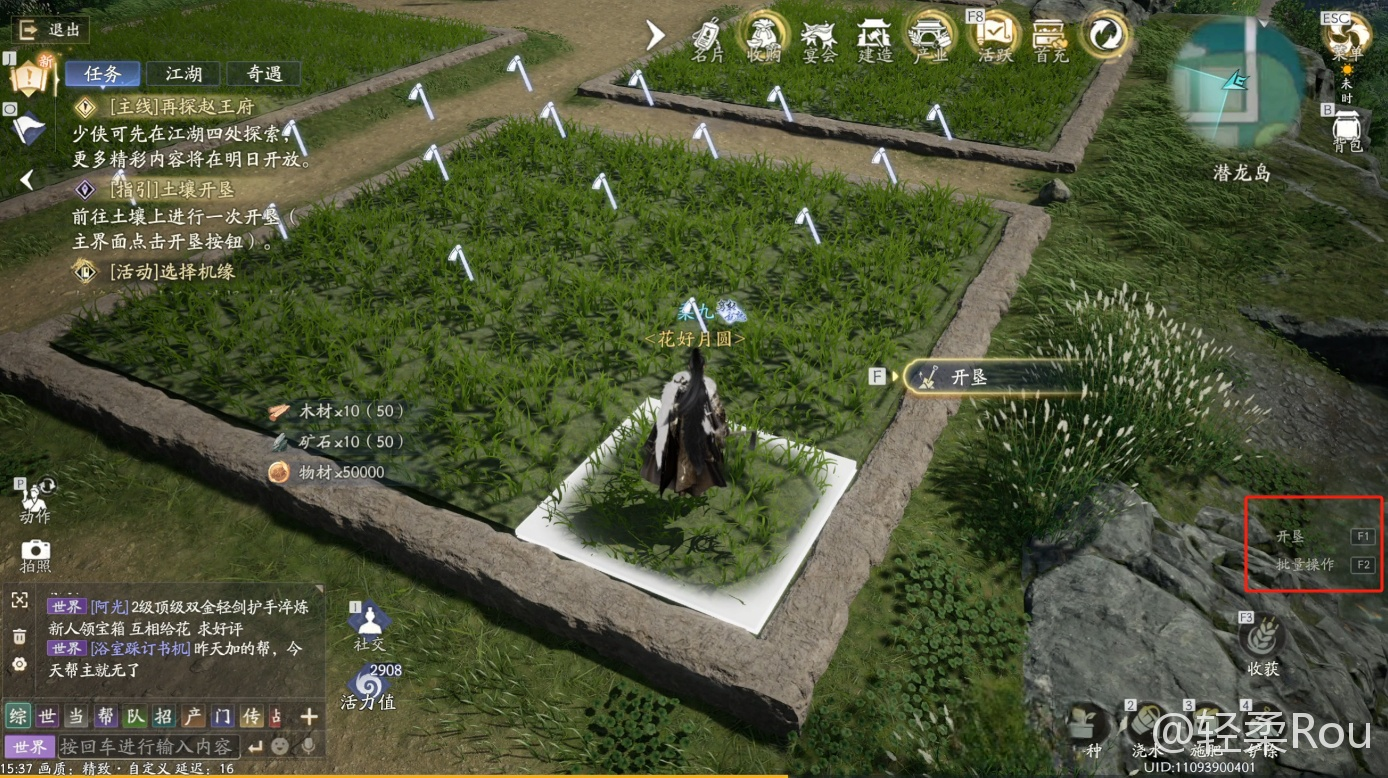 首先是种植,和传统玩法一样就是开垦田地种田浇水施肥收获,这里提醒一点,不要傻乎乎的一块田一块田的操作,右侧可以选择批量进行