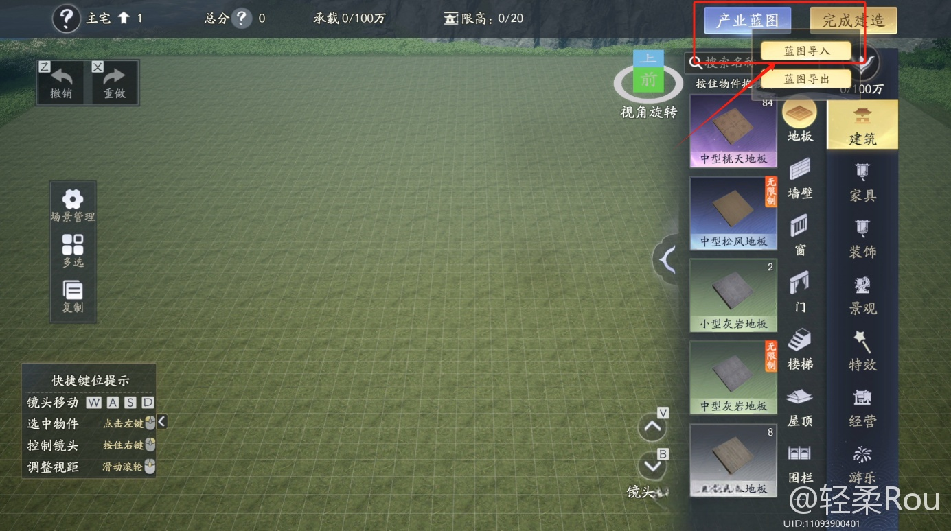 领完以后点击建造,在蓝图这里就可以导入我们刚刚领到的房子了
