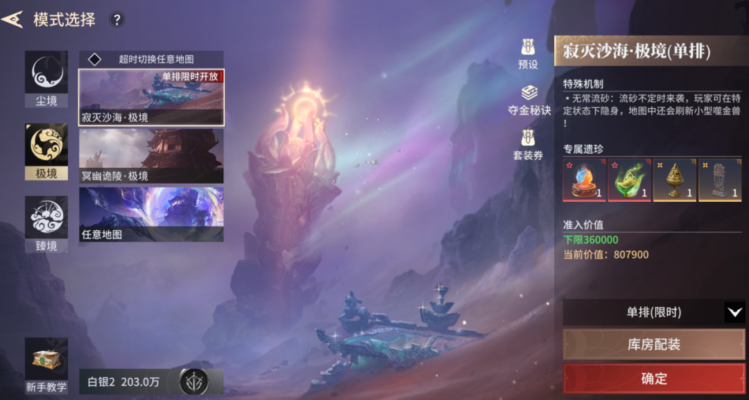 【寂灭沙海·极境】将在每周末限时开放单排,更吃刀法、更讲策略,等你来战!