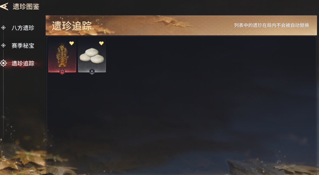 新一项懒人福音上线,遗珍图鉴中英雄们可以对遗珍进行追踪锁定,之后列表内的遗珍在局内将不会被自动替换!