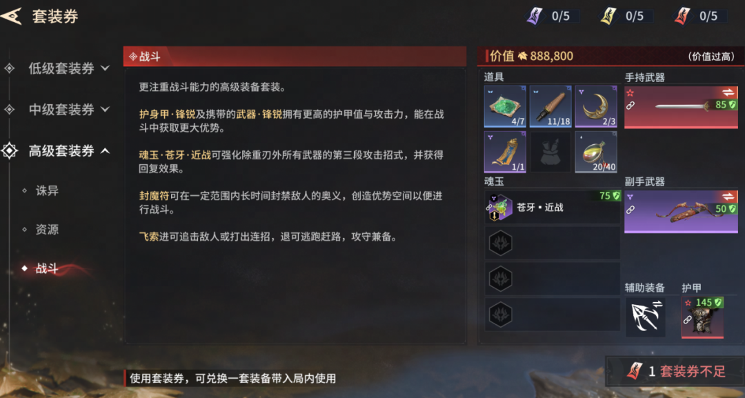 随着装备种类的增加,套装券也将带来更丰富的选择,低中高三级共九套装备总有一款适合你!