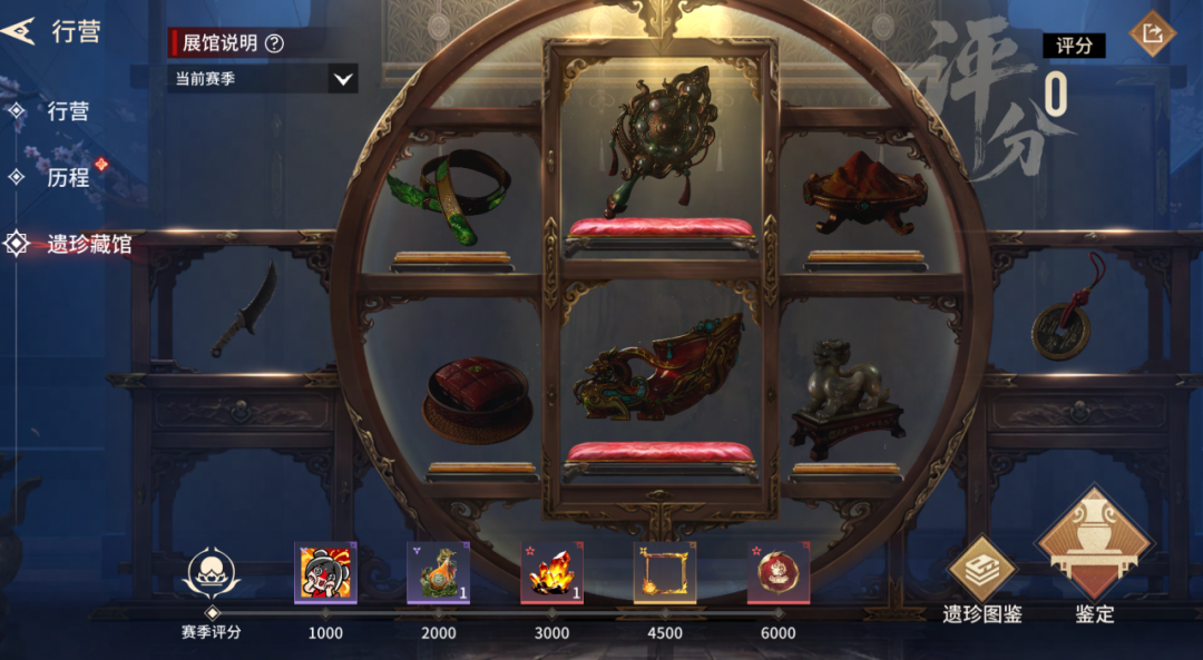 行营新增遗珍藏馆,消耗一定金叶子可对天罗赛季及以后赛季遗珍进行鉴定评分。鉴定后的遗珍既可入馆珍藏,也可挂行售卖。