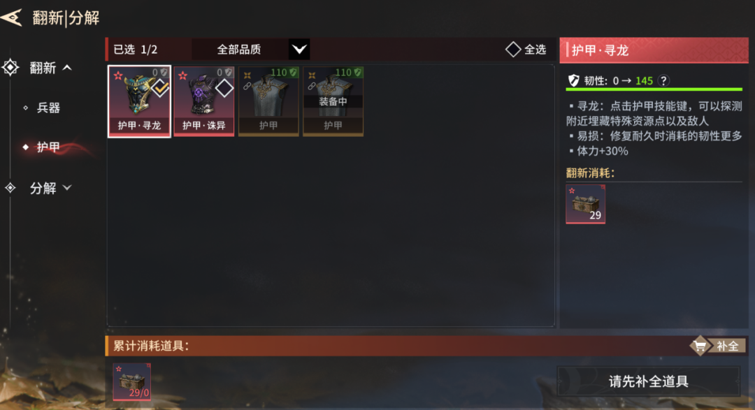 赛季更新后,护甲与武器将可以使用对应品质的【巧械匣】进行韧性修复。一甲/刀传三代将不再是梦!