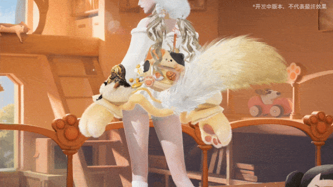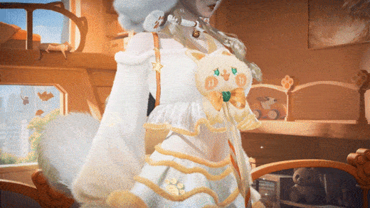 金黄米白毛色上衣,毛绒边猫爪波浪短裙,超萌大猫爪粉肉垫,金色毛绒腿套,蓬松软糯,谁看了不想上手rua这么一下。