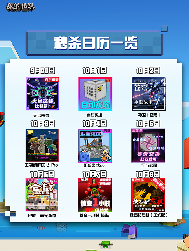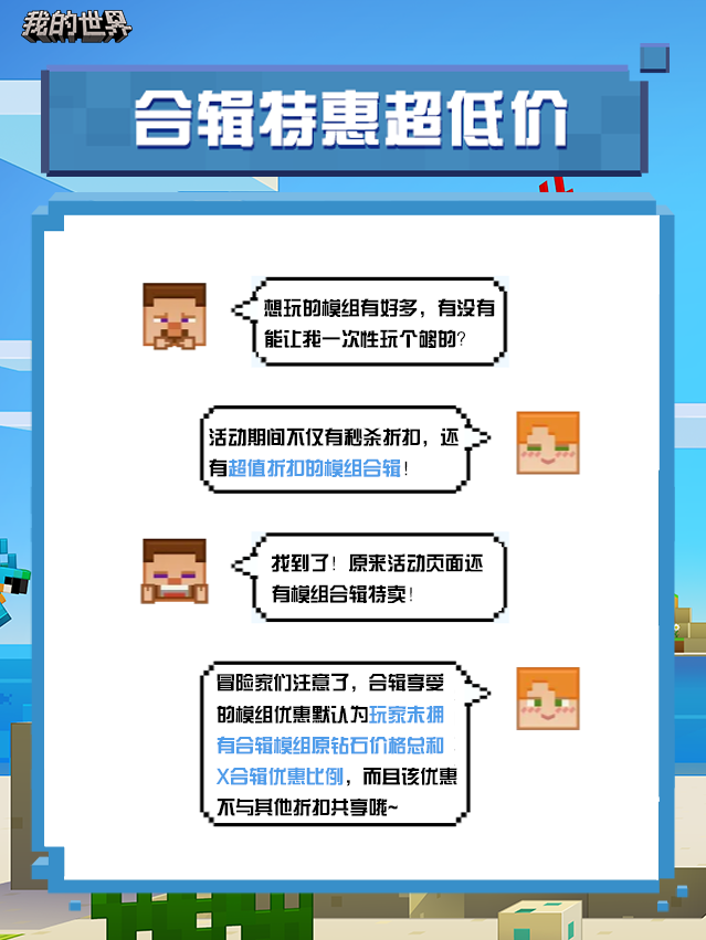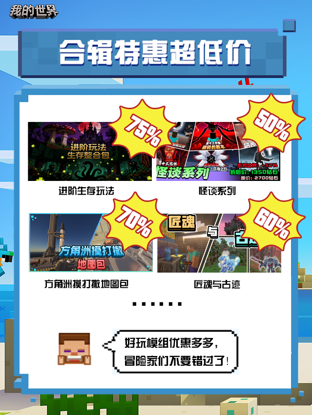 活动期间各式好玩模组通通打折,模组试玩券每天放送