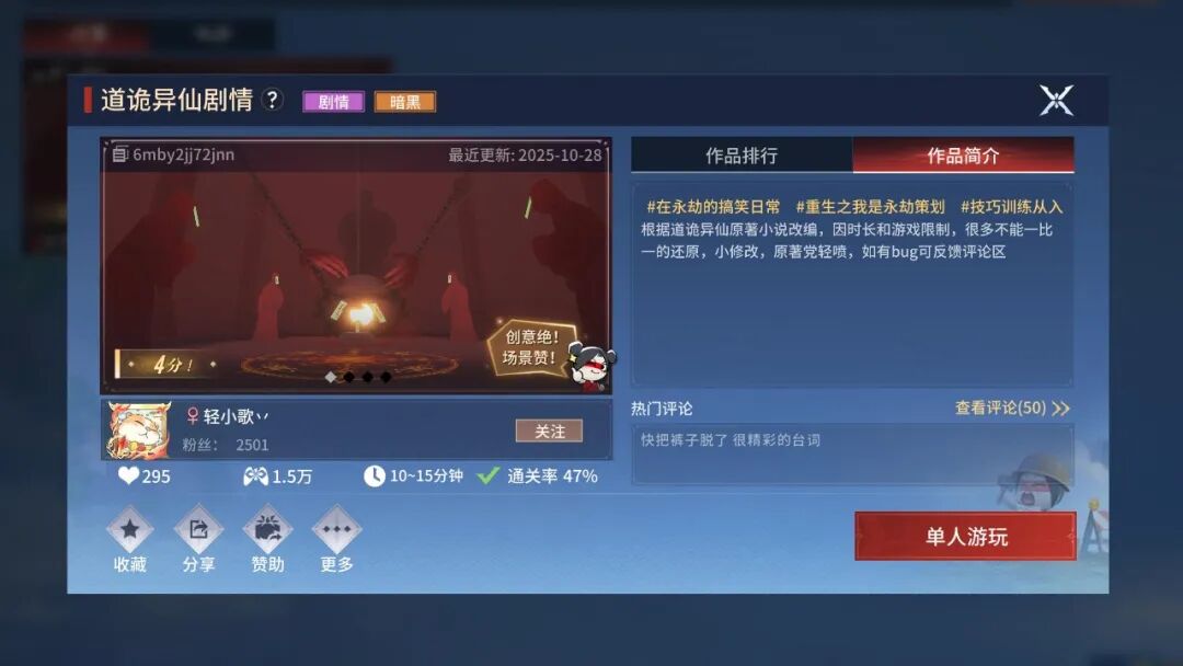 永劫无间和道诡异仙联动了,可是不了解道诡异仙作品?没关系,现在打开无拘乐园【道诡异仙剧情】地图,带你沉浸式踏入这个诡谲世界!