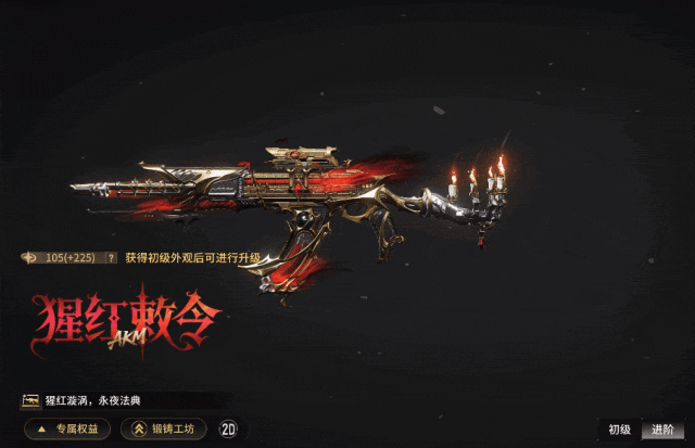 进阶之下,【AKM-猩红敕令】将获得特殊检视,以枪尾的燃烧之手,祈祷无限之力降临其身!伴随着深沉夜色,血月即将升起,属于它的夜猎,才刚刚开始....