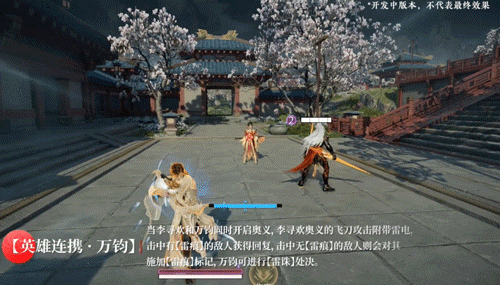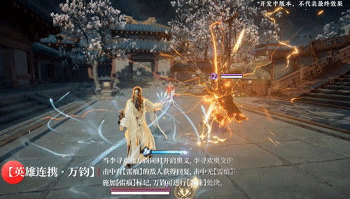 当万钧与李寻欢同时开启奥义,李寻欢的飞刀将附雷光,命中带【雷痕】的敌人可为自身回复状态,命中无雷痕者则施加【雷痕】标记,助万钧发动【雷诛】处决!