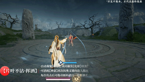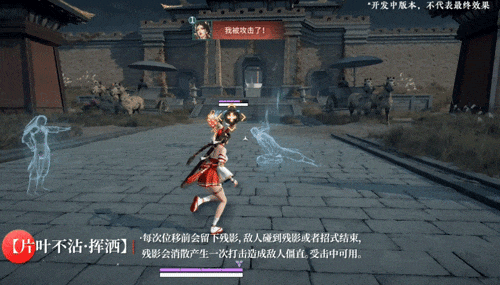 位移前留下的残影被敌人触碰或者该招式结束,残影会消散产生一次打击造成敌人僵直。(必中),如落英纷乱缭乱战局。
