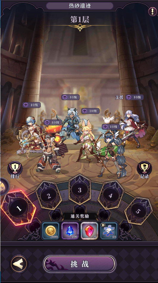 击败当前层的敌人,就可以获得丰厚的通关奖励并进入下一层,如果打不多敌人时候,可以尝试调整阵容或站位,如果还不行,就可以在通过记录中查看其他玩家的通关阵容哦。左侧还有一个排行按钮,也可以看你的排名。