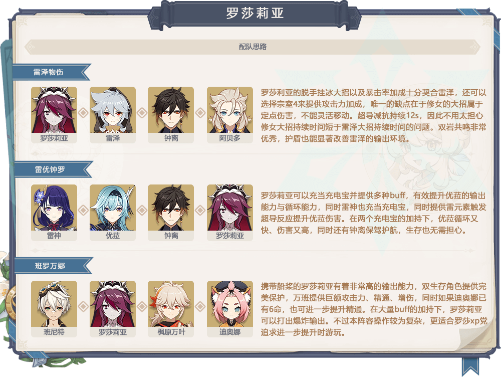罗莎莉亚目前最适合辅助优菈,辅助绫华只是作为申鹤的下位替代,主玩优菈或者没有申鹤辅助绫华时,可以考虑抽取。