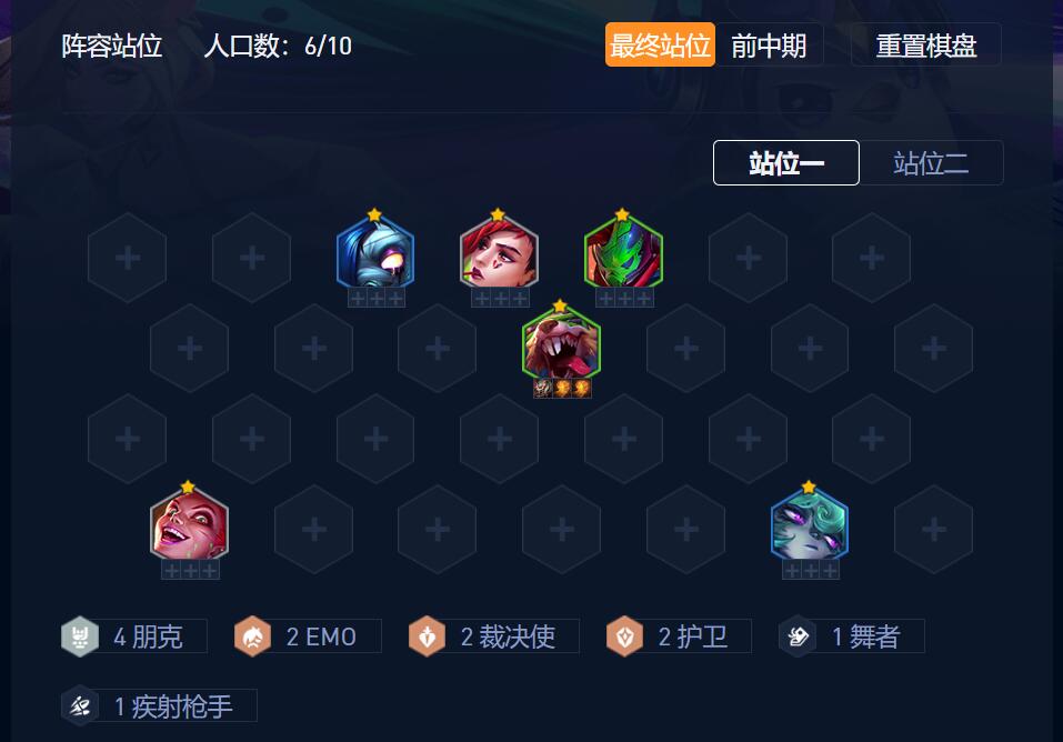 朋克这个羁绊可以说是非常适合赌狗阵容,首先,这个羁绊可以每个回合使用一金币刷新,前期每个回合都刷的话,追三星就比较轻松了。毕竟,朋克中的英雄只有一费和两费,前期刷出的概率非常高。其次,刷新商店可以让朋克提升生命值和伤害,虽是赌狗阵容,但是上限却非常高。