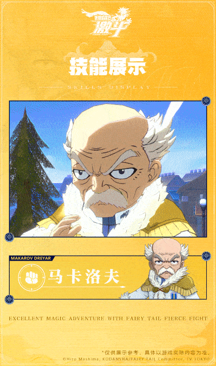 🔥妖精尾巴公会会长·力量物理型 妖精尾巴会长,圣十大魔导之一。擅长让自己身体巨大化的巨人魔法,也能使用火焰、冰、风、光等多种属性的魔法。