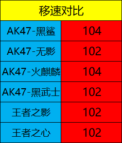 优秀的射速已经决定了黑鲨是一款十分优秀的武器,在我们的平民AK当中已经十分不错了,同时,其手持移速也是相当优越,其移速超过了王影、王心等老牌王者级AK,优秀的移速让我们在开局抢点以及残局支援有更高的优势,以下即为小编整理的移速对比。