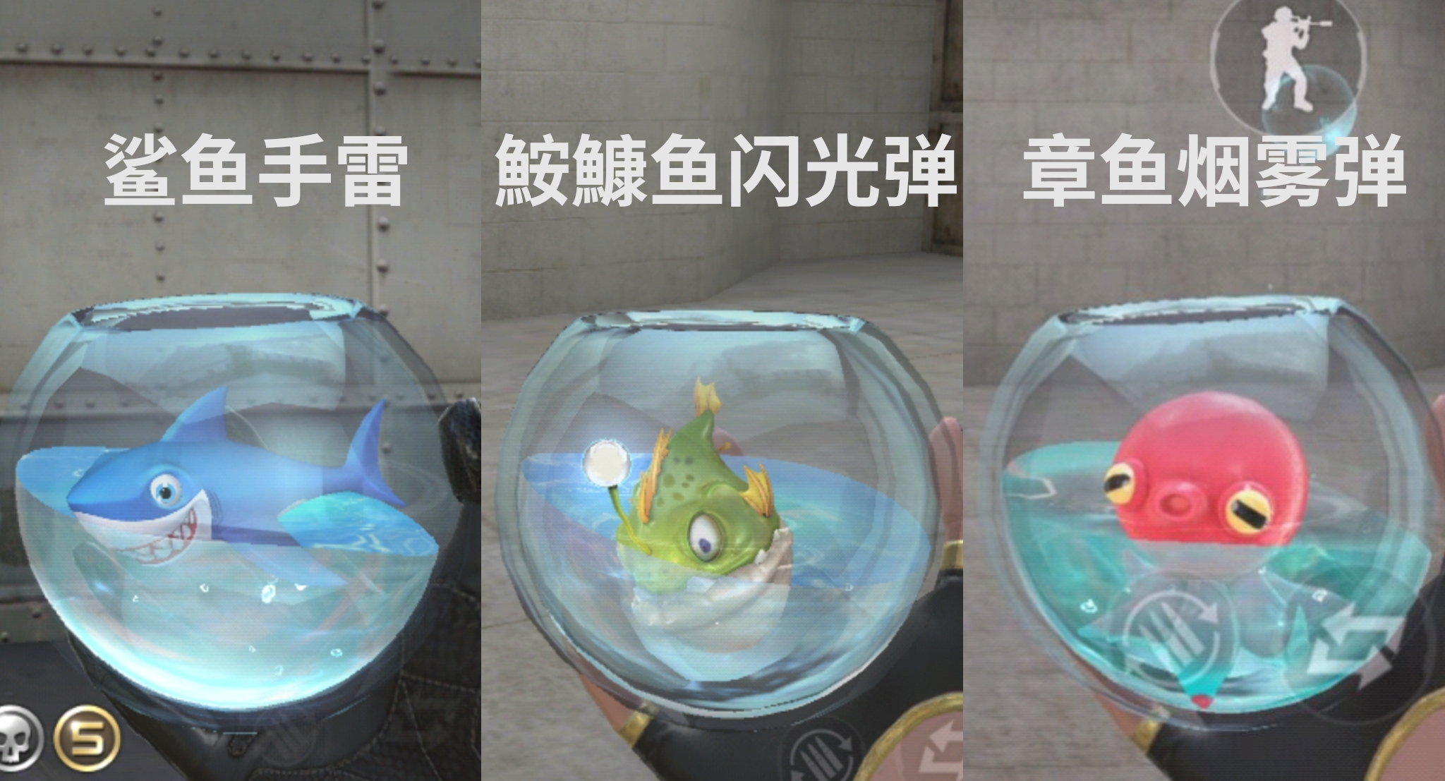 不仅如此,鲨鱼手雷、鮟鱇鱼闪光弹、章鱼烟雾弹也会在活动期间开放获取。这三款投掷武器的外观创意十足,可爱的Q版小鱼在透明鱼缸里游来游去,令人爱不释手。喜欢这三款武器的CFer,可以关注一下后续的活动爆料。