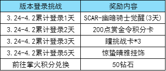 新版本已经上线一周了,大家有没有去体验新玩法和新地图呢?自3月24日起,大家只需累计登录游戏,即可前往限时活动领取赏金令积分、惊蛰晴雅挂饰等奖励。