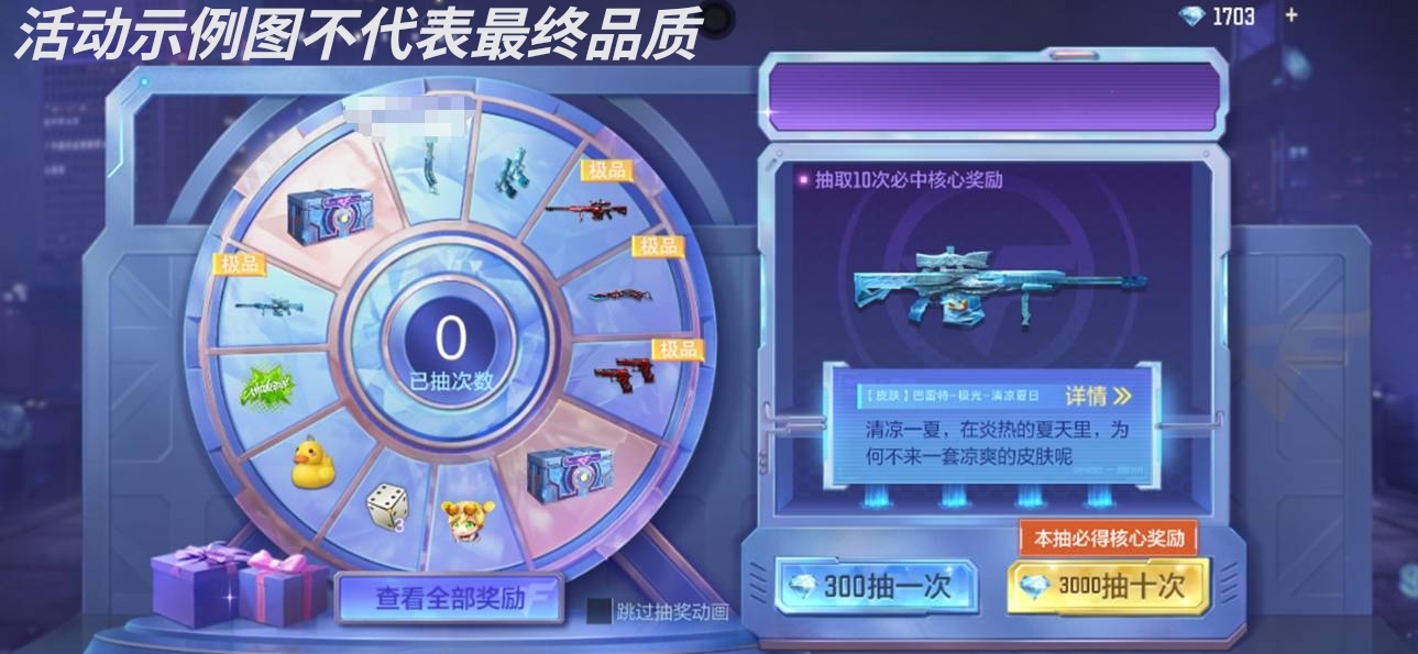 值得一提的是,这个价格和通过飞行棋拿下巴雷特-极光差不多,而且必得柯尔特-极光、蝴蝶刀-极光和全套清凉夏日皮肤,所以综合性价比是高于飞行棋的。想入手巴雷特-极光的CFer,可以直接去参与夏日清凉百抽礼包活动。