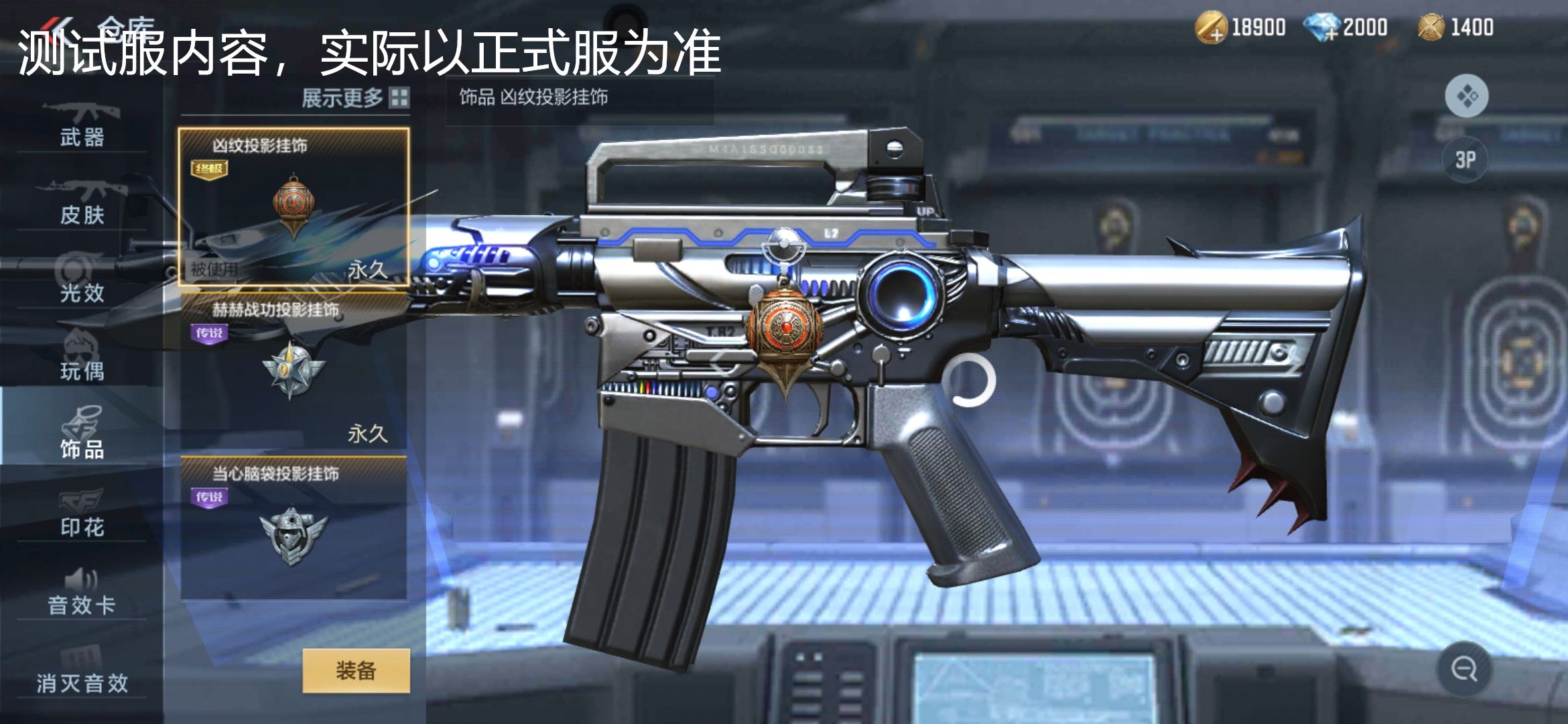 凶纹投影挂饰是以球体和向下垂的锥体为主体结构构成的一款可以显示投影效果的专属挂饰。投影效果的挂饰开创了CF手游万化界的先河,具有纪念意义。(下图为仓库内展示效果)