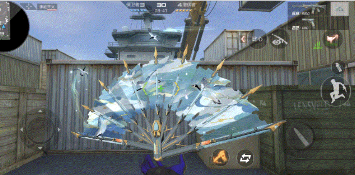 M4A1-仲达-白露皮肤在开火时,枪火特效十分炫酷,仿佛是一江清水从枪口流出。M4A1-仲达-白露皮肤在换弹时,一只大雁从远处飞来,迅速钻入枪身,与此同时另一只大雁从弹匣出飞出,留下一缕青烟随风而散。当我们使用M4A1-仲达-白露击杀对手后,被消灭的敌人会瞬间化作几只青色的鸿雁,在一阵青烟中飞腾消逝,宛如秋雾般散去!