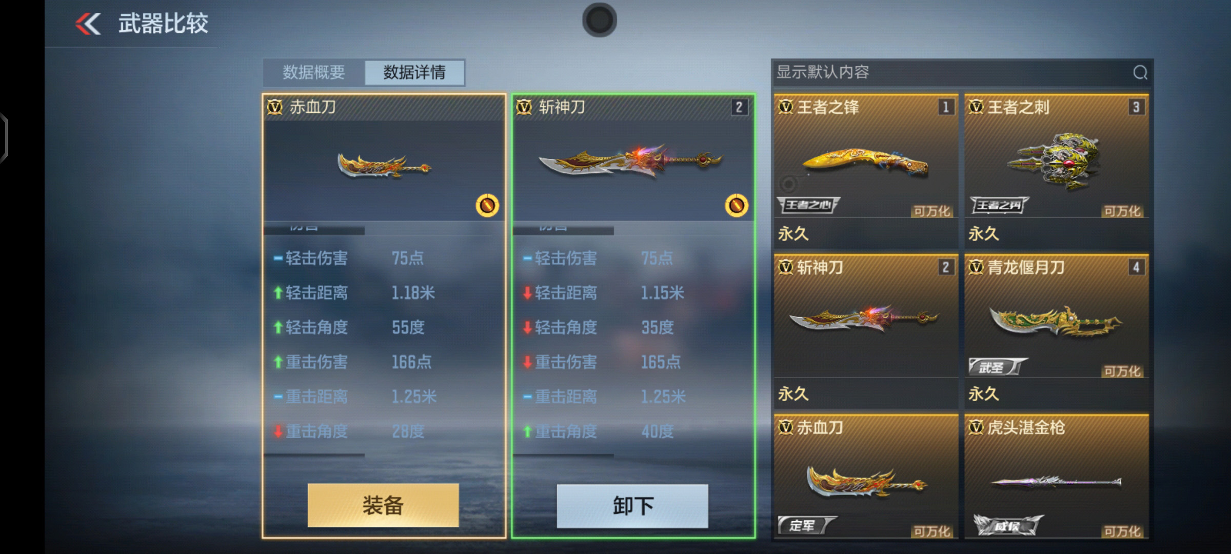 至于虎头湛金枪,二者的数据还是比较类似的,唯一的区别就是虎头湛金枪的重击距离为1.27米,而赤血刀的重击距离为1.25米。相较而言,赤血刀的重击距离会略微小一点,不过考虑到赤血刀多了二段攻击,相较于虎头湛金枪有更高的容错率,并且在面对敌人较多的时候二段击也具有更大的优势,综合考虑的话还是比较推荐赤血刀。