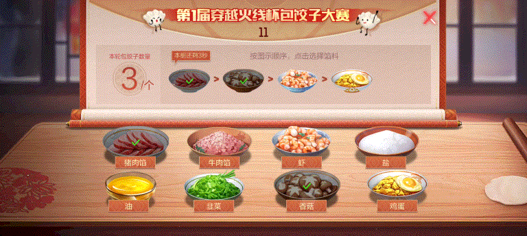 细心一点的CFer可能发现了,每一组饺子馅料也是有规定完成时间的,逾期则会重置饺子馅料组合。如此一来,就更考验各位CFer的反应能力了!
