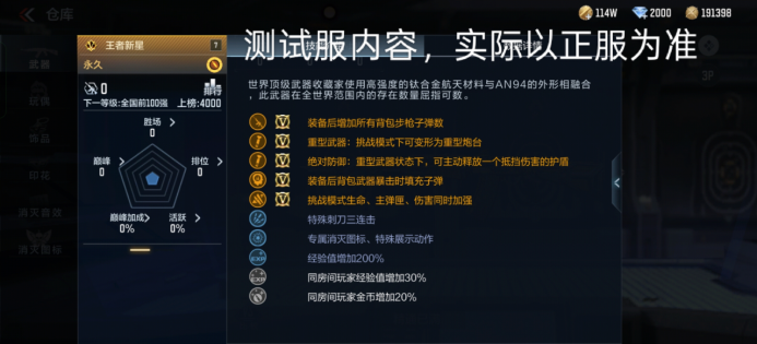 王者新星以鎏金锋芒重塑战场规则,不仅在视觉上诠释低调奢华,更以600发弹容、900点爆头伤害与5秒无敌护盾的“黄金三角”组合,成为挑战模式的终极杀器。