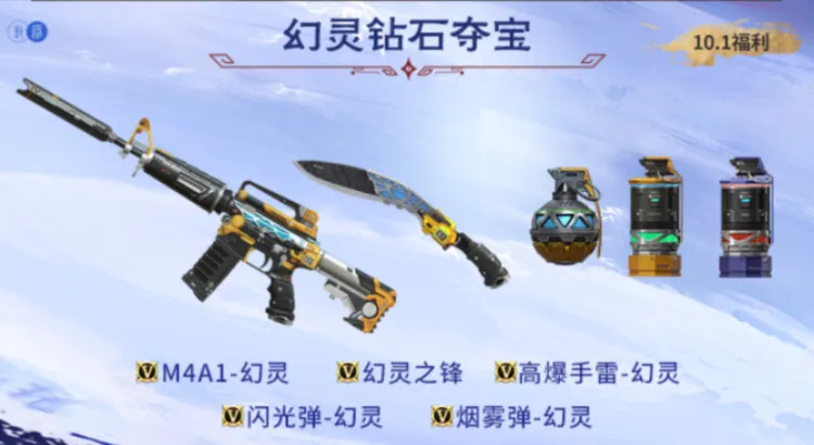 幻灵系列武器包括M4A1-幻灵、幻灵之锋、高爆手雷-幻灵、闪光弹-幻灵以及烟雾弹-幻灵。幻灵系列武器的外观与幻神系列武器在一些设计上有异曲同工之妙,检视动作也很经典。M4A1-幻灵在生化方面拥有加成;近战武器幻灵之锋选用尼泊尔系列武器,手感绝佳。