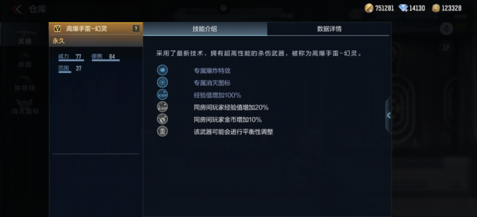 高爆手雷-幻灵拥有英雄级手雷标配的经验值增加100%,助力玩家更快提升等级。