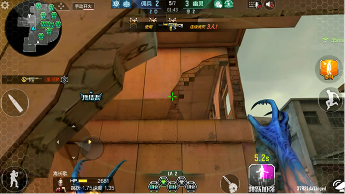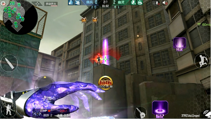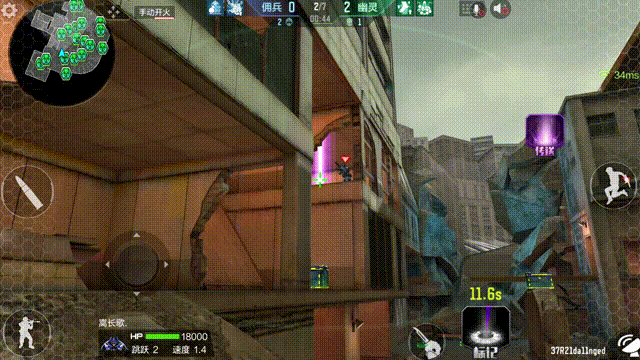 另一处防守点是一个露天区域,由各个断墙组合而成。由于断墙数量多,提升了失误的概率。在子弹的干扰下,生化幽灵完全没办法掌握正确的步伐,失误的概率容易无限提升,哪怕只有一个人都可以轻易守住。因此不能强攻,有两种方式可以攻入。一种成功率较高,仍是虚空终结者利用传送攻击,但需要队友正面强攻吸引人类注意。另外一种则是利用飓风的弹跳落入该点位最高处,但需要一定的预判和操作水平,不然极易失误。