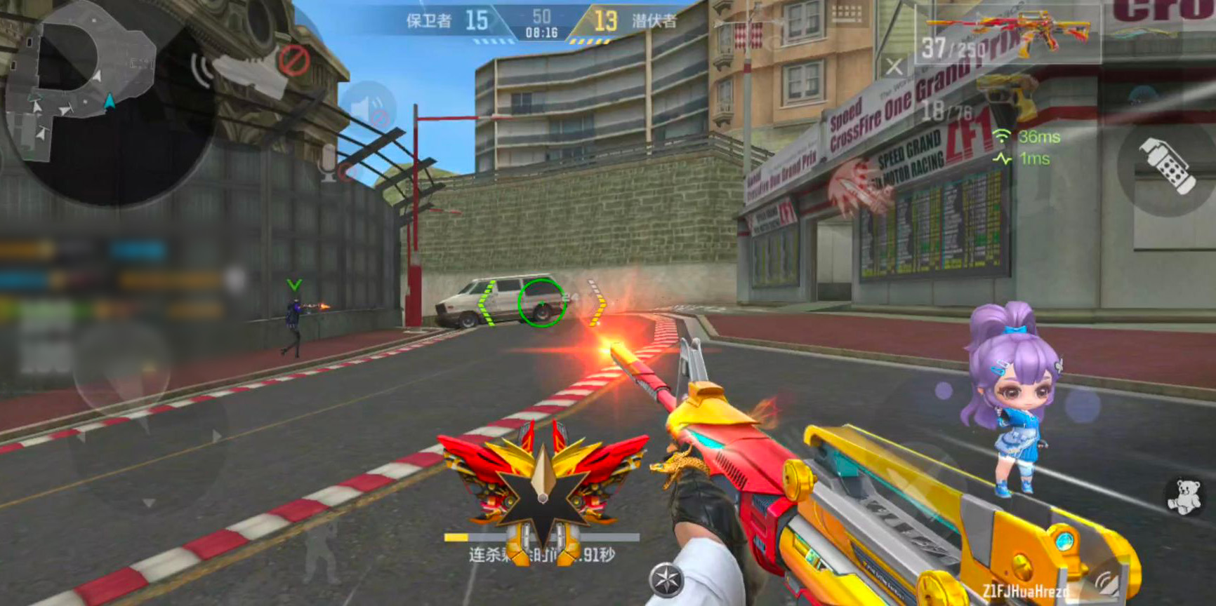 选择使用步枪在侧道战斗非常正确,毕竟中路开阔不适合步枪突击。侧道赛道上摆放了很多汽车,这些掩体可以帮助我们较为顺利的进入侧道中段,随后可以占据房屋进行架点,不让敌人过点。