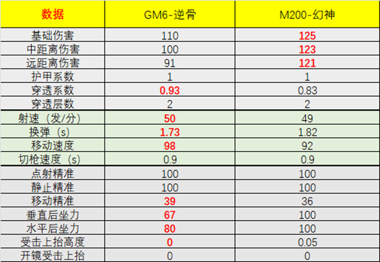 作为一款狙击枪,这把武器是一款非常轻巧的轻狙,那么作为对比对象一定是经典而又非常强势的“M200-幻神”,接下来在图中一起看一下两把武器的对比情况吧!