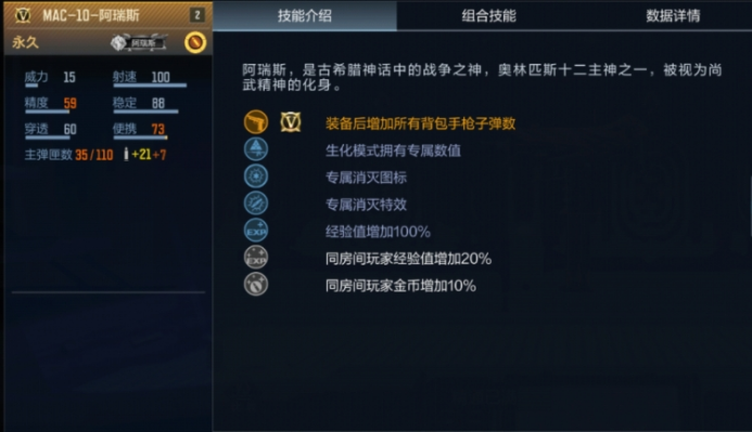 MAC-10-阿瑞斯作为可以扫射的副武器,对新手来说十分友好,结合其技能及套装,这把武器的使用场景也就呼之欲出了:一是作为新手的“无脑”副武器搭配狙击枪使用,二是搭配阿瑞斯全套装勇闯生化模式,三是作为背包陪衬,增加副武器子弹。