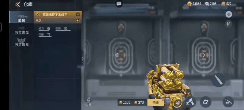 迷你辛王战车只需要打几局挑战,加上赠送的零件,很快就能合成,而黄金版则需要挑战有一定的实力,并且挑战真·辛王数次,才能获得。黄金版在保留原版机动性、切枪优势的基础上,新增了挑战榴弹炮,综合性能更胜一筹,是当之无愧的战车之王,大家赶快打挑战把这个迷你炮王拿到手吧。