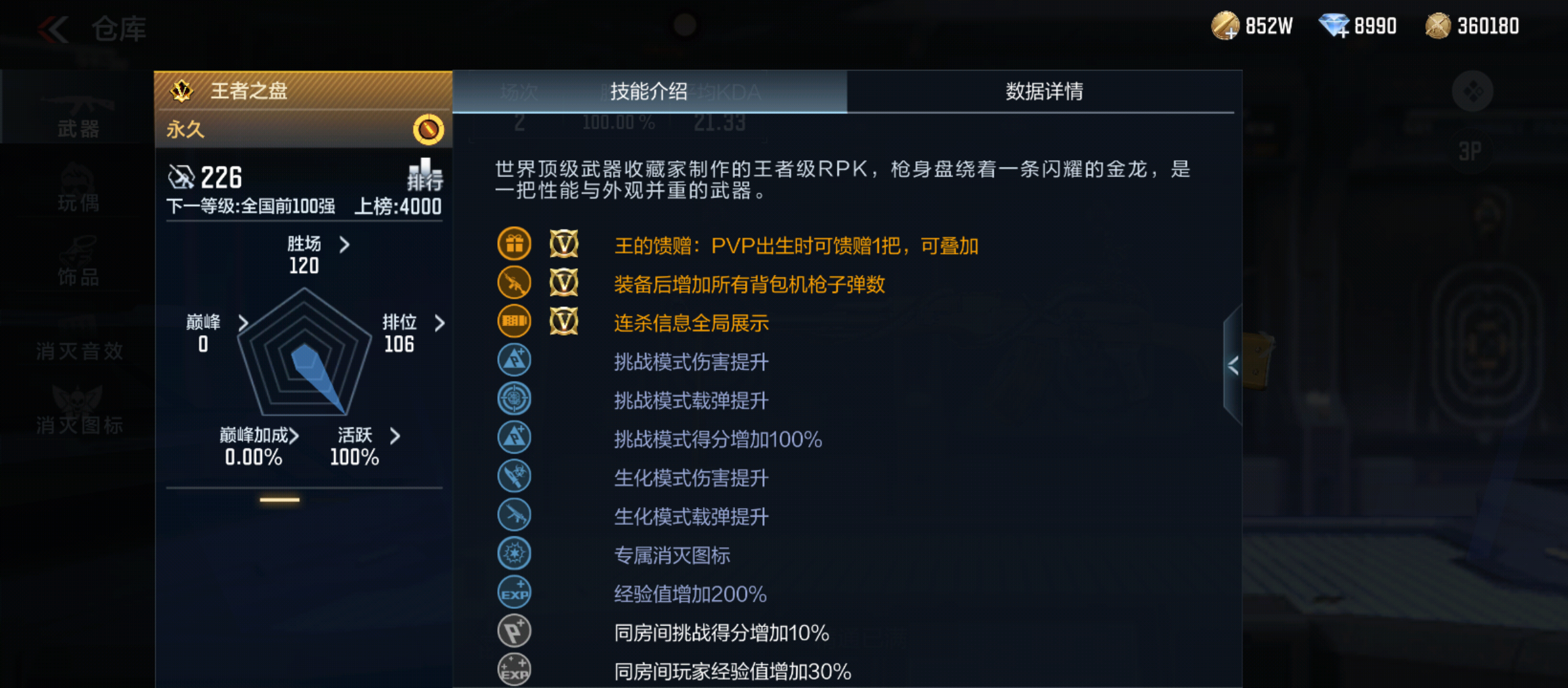 在挑战模式中,王者之盘的实际效果可能并没有那么理想,毕竟没有范围伤害技能,但是得益于挑战模式得分增加100%,在特定模式有奇效。