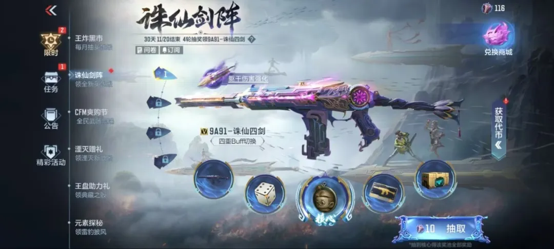 诛仙剑阵活动持续开放中,相信大家早已获取了英雄级版本的9A91-诛仙四剑,该武器拥有专属技能“诛仙四剑”,通过自由切换剑匣中的剑,能针对性的获得不同部位的伤害加成。
