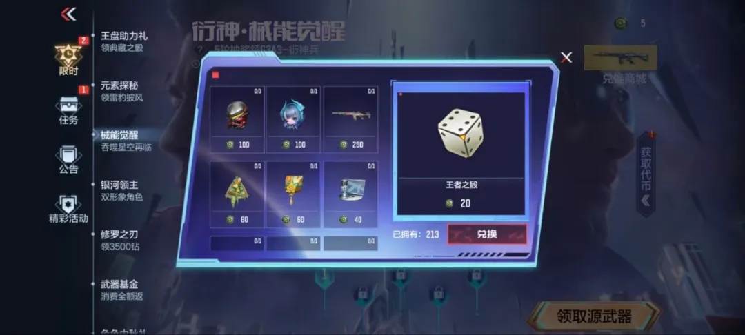 打造完成后也别忘了去兑换商城逛一逛,即使所有道具都已获取的情况下,兑换商城中还有2枚王者之骰,仅需40枚衍神币哦~