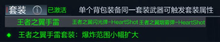凑齐王者之翼投掷套装后,王者之翼手雷的爆炸范围会得到小幅度的扩大,使其容错率会更高一些。