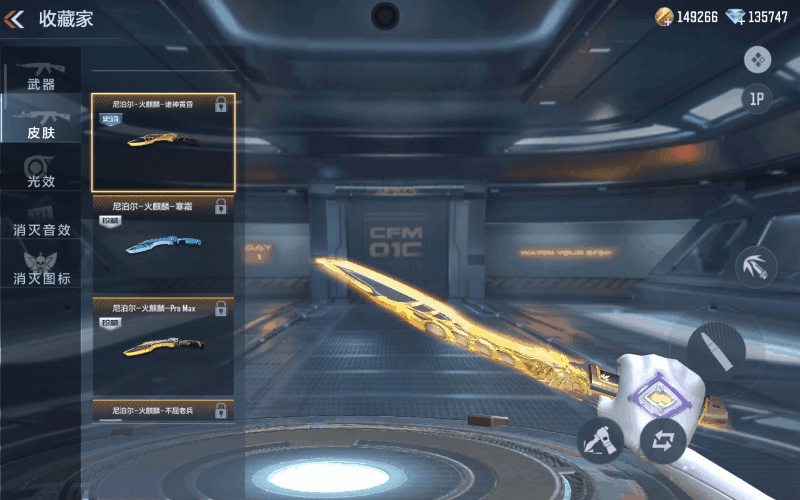 尼泊尔-火麒麟在装备诸神黄昏皮肤后,虽然刀锋处的色彩由锋利的银色变为了暗黑色,但这丝毫没有减弱其锋利的刀锋光泽,反而更加凸显了它的杀伤力与威慑力。刀柄部分也被统一为暗褐色,与整体色调相得益彰。而银色的麒麟头在暗褐色的刀柄上显得尤为醒目,时刻涌动着金色的光辉!