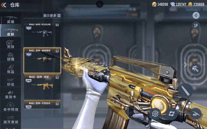 M4A1-雷神装备上诸神黄昏皮肤后,完美平衡雷神的科技感与诸神黄昏的厚重质感,原本银蓝色的科技底纹并未被覆盖,而是与暗金色铠甲纹理形成叠层设计。铠甲纹理沿着枪身线条分布,在枪管、护木等关键部位形成类似金色装甲覆盖的视觉效果,炫彩的光影从铠甲缝隙中透出,既有科技枪的轻盈,又有史诗皮肤的厚重。