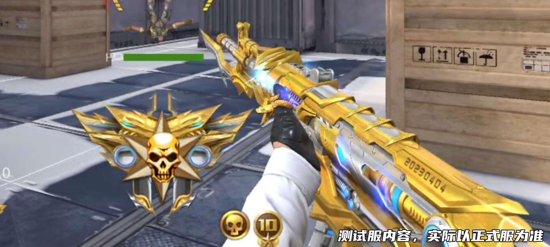 王者之尊展现出未来科技与艺术设计的完美结合,整体以金色为主色调,辅以银色衬托装饰,枪械多处点缀蓝色光效,整把武器散发出高贵与威严的气息。
