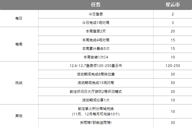 相信很多CFer对这样的活动不陌生,参与了不止一次。活动分为每日、每周以及挑战任务,完成后可获得大量的星云币。使用星云币可抽取奖励,本期活动采用抽一少一的游戏玩法,完成一轮后可解锁下一轮奖池,直到所有的奖励全部拿下。