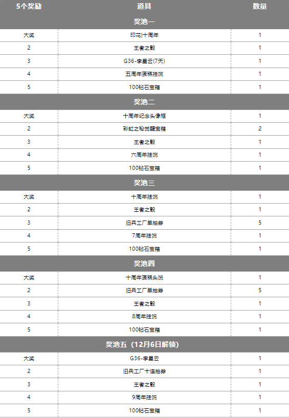 弈局枪火不良人活动奖励分为奖池奖励和商城兑换奖励两种。首先来看奖池奖励,其中可获得大量的钻石、王者之骰,这两种道具都是当下游戏中的热门道具,使用范围非常广泛,有需要的CFer一定不要错过。值得注意的是,在前四轮大奖分别是十周年专属万化——印花|十周年、十周年纪念头像框、十周年挂饰和十周年蛋糕头饰,非常具有收藏价值。